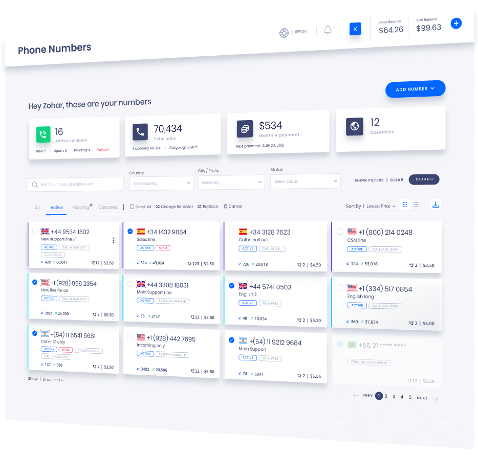 Easily purchase and manage virtual numbers through our intuitive portal. With streamlined features at your fingertips, you can optimize operations and focus more on engaging and supporting your customers.